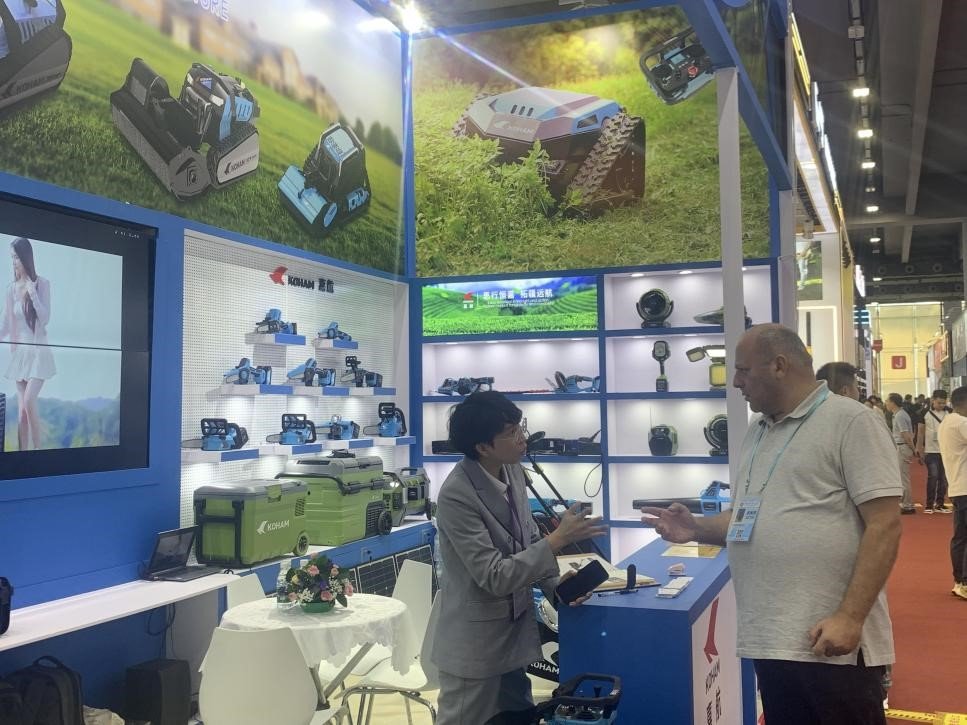 As soon as you step into the KOHAM exhibition hall, you can feel the warm atmosphere of negotiation. The scene is crowded with people, and KOHAM’s professional staff are busy and orderly shuttling among them, answering questions and solving doubts for every merchant who comes to consult. They use fluent Chinese and English to explain the characteristics and advantages of remote control lawn mowers and other garden products in an easy-to-understand way.